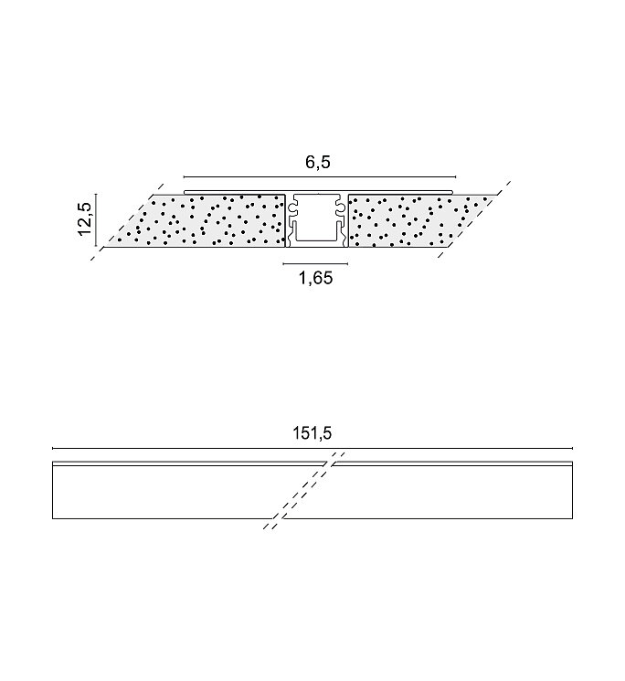 "Totally concealed" recessed aluminum profile for installation on plasterboard false ceilings.