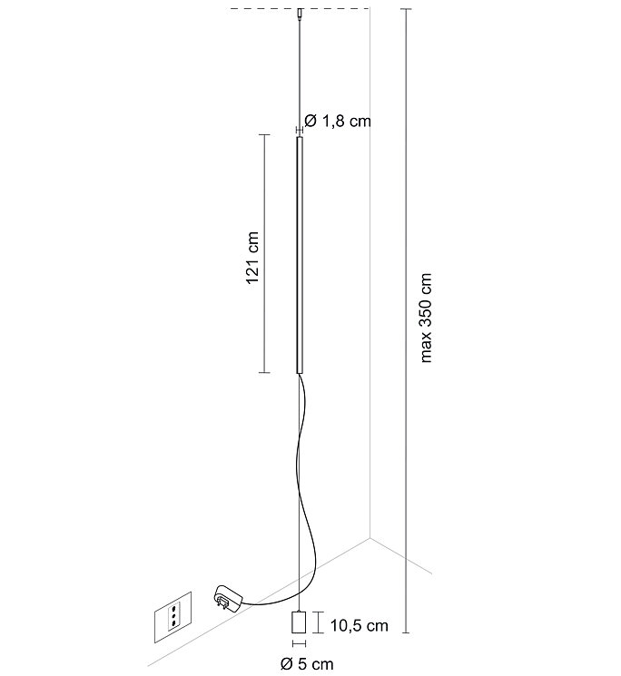 La lámpara se suministra con convertidor en enchufe e interruptor táctil/dimmer con memoria integrado en el perfil.