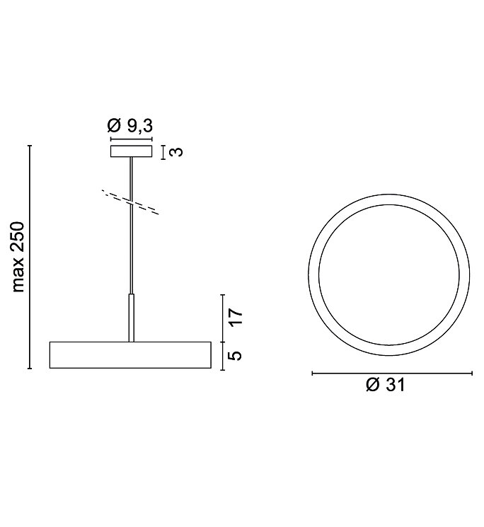 Suspension à lumière diffuse avec structure en aluminium, écran en méthacrylate et driver intégré.