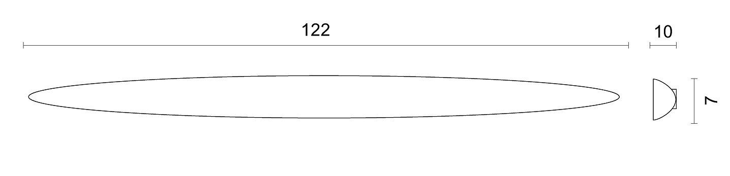 Lampada da parete da 122 cm a doppia emissione luminosa con sorgente LED e driver integrato, corpo in metallo, maschera frontale in alluminio e diffusori superiore e inferiore in metacrilato.