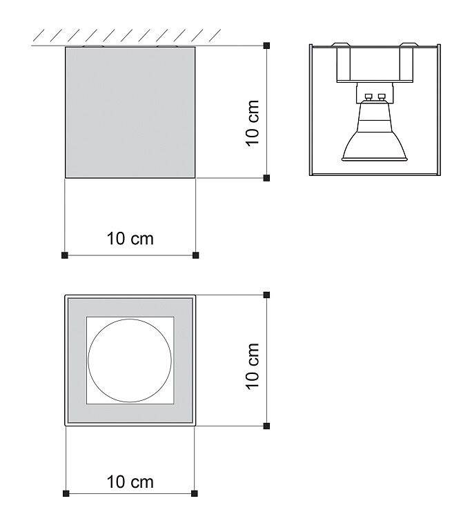 Lampada da plafone a luce diretta con corpo in alluminio e portalampada con attacco GU10.