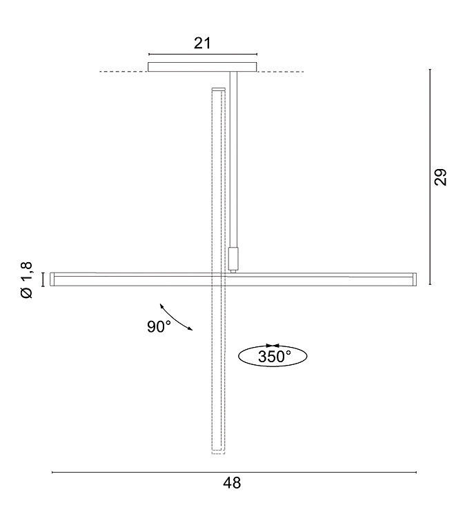 Lampada orientabile a luce diffusa con corpo in estruso di alluminio e diffusore in policarbonato opalino da integrare nei binari a 48V.