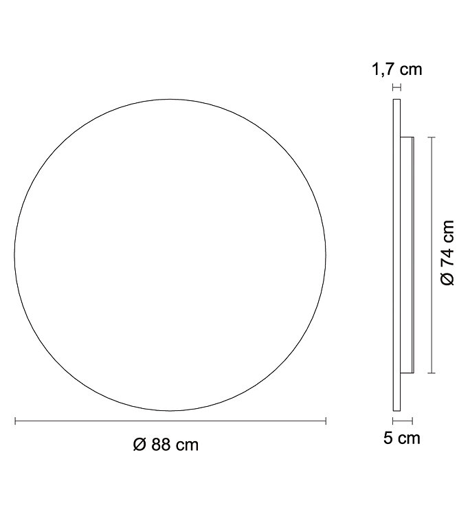 Настенно-потолочный светильник с радиальным излучением света, со светодиодным источником и встроенным драйвером, алюминиевой конструкцией, фасадом из МДФ и внутренним рассеивателем из опалового поликарбоната.